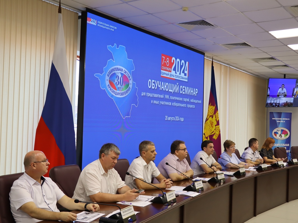 В избирательной комиссии Краснодарского края в режиме видеоконференцсвязи состоялся обучающий семинар для членов участковых избирательных комиссий, политических партий, наблюдателей и иных участников избирательного процесса. Трансляция семинара, посвященного работе участковых избирательных комиссий до первого дня голосования, осуществлялась на официальном сайте избирательной комиссии Краснодарского края и в телеграм-канале «Избирком Кубани». Вторая часть семинара, темой которого станет организация голосования в дни голосования 7 и 8 сентября 2024 года, пройдет 5 сентября.